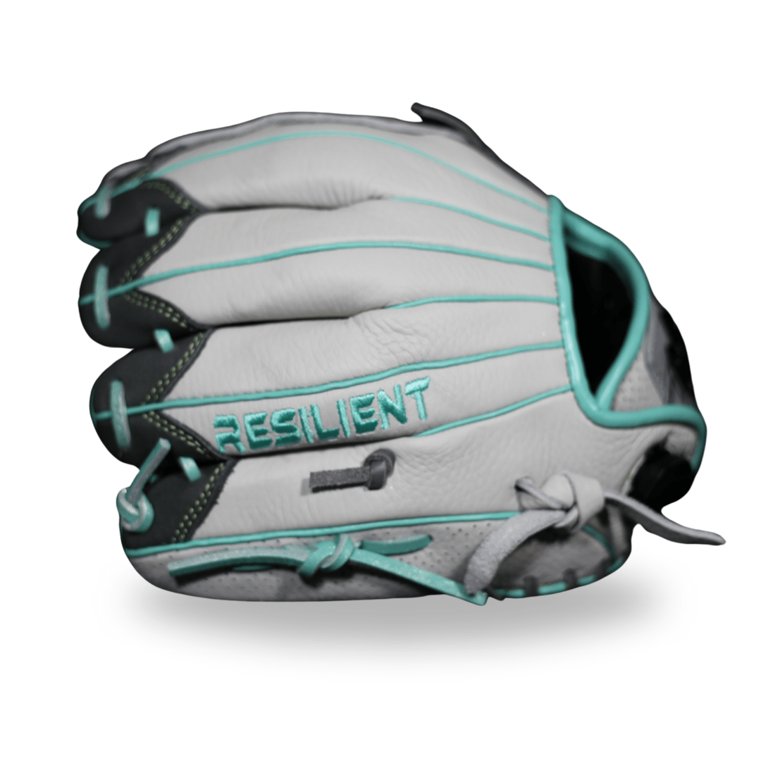 This softball glove is part of the Discovery Series and is a great option for younger players due to its soft, flexible feel. It is truly a plug-and-play design. The outer shell is white with teal and mint green accents on the pinky and grey  and mint laces. Calypso is handcrafted using Rosie's Premium Steerhide Select leather, which provides long-lasting durability. This glove was designed by the Founder's daughter and is the #1 selling youth glove in the whole lineup!!