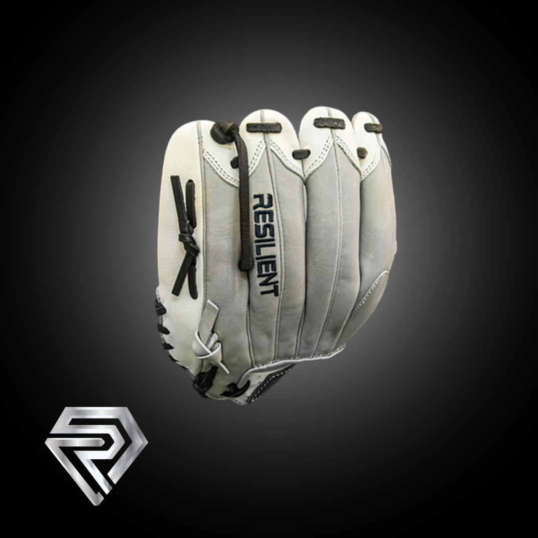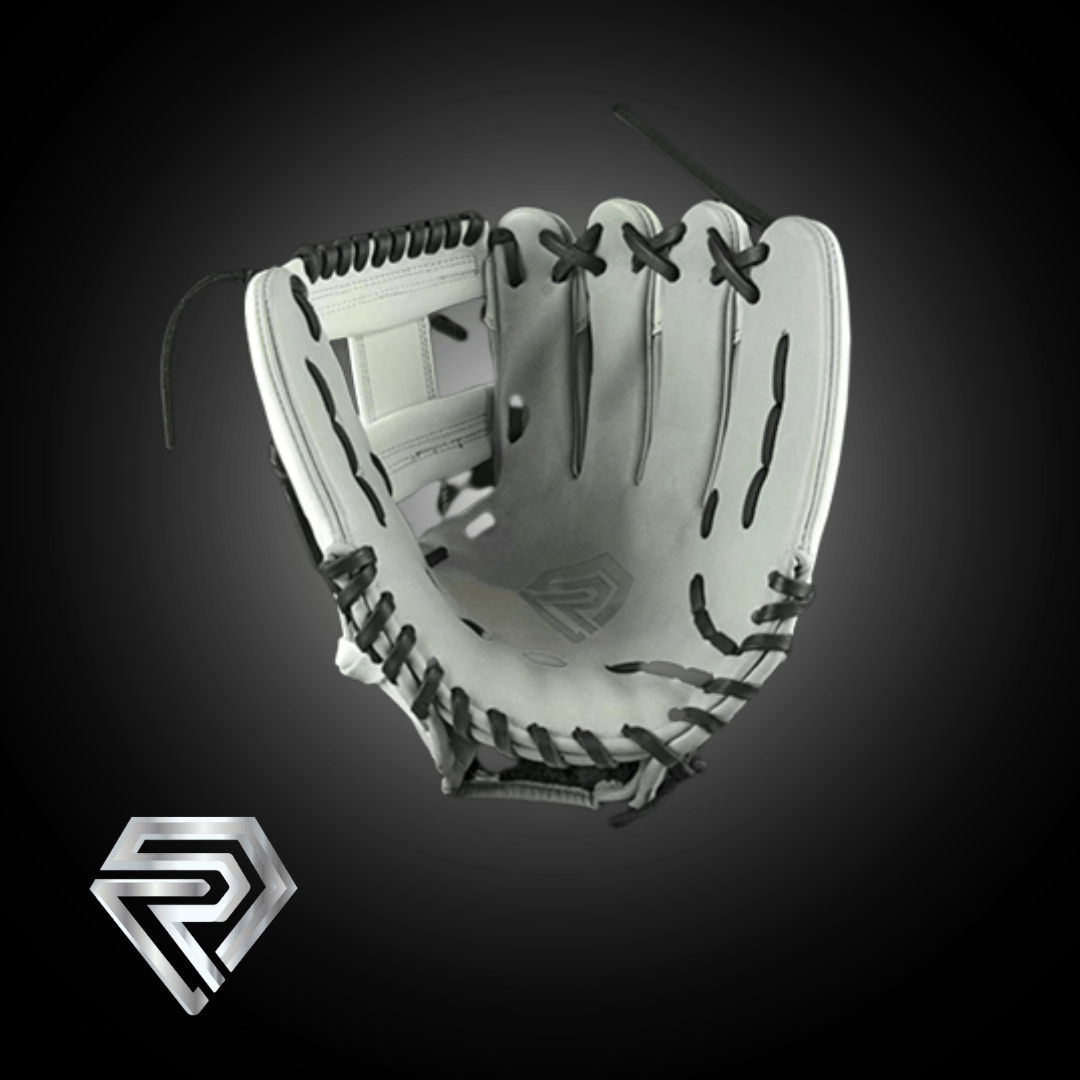 This softball glove is part of the Heirloom Series. The outer shell is dressed in grey, white accents and black lace. Metallic silver welting and binding really makes this glove shine in the sun!! Look closely at the wrist patch, and you will see an embossed leather American flag. This glove is constructed of Rosie's Superior Kip Leather and is the choice of college and professional players due to its lightweight feel and extreme durability. Put this glove to use, and you will welcome any batter to Bring the Smoke!