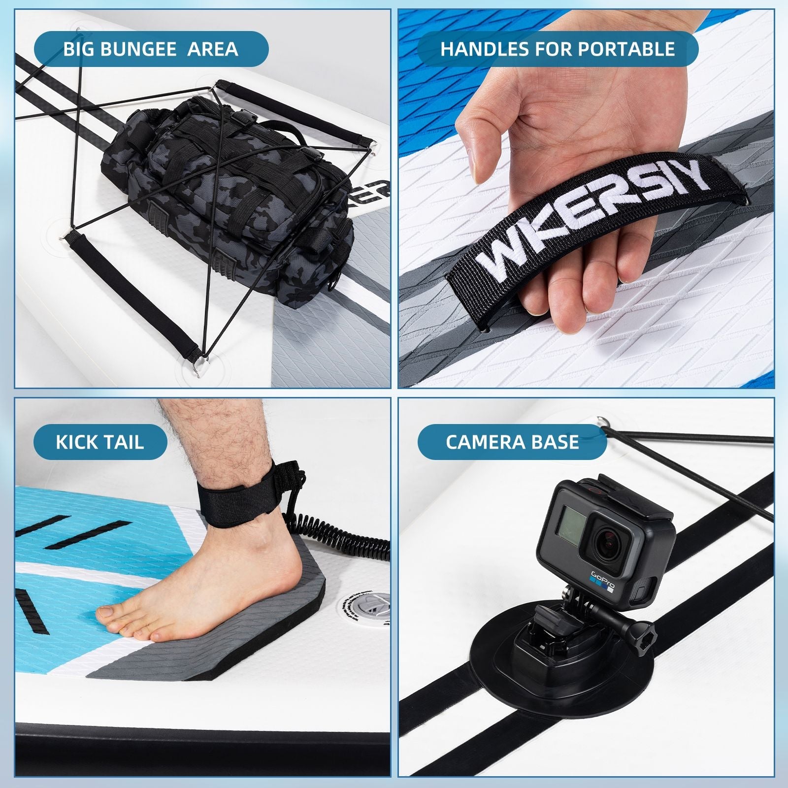 [] - Wkersiy sup offers you a complete stand-up paddle board with a big waterproof travel bag, safety leash, Aluminum adjustable paddle. Once you arrive at your destination, you can quickly inflate your board with the inflatable stand-up paddle board pump. The method of installing fins is simple: slide in and clip, no tool needed.