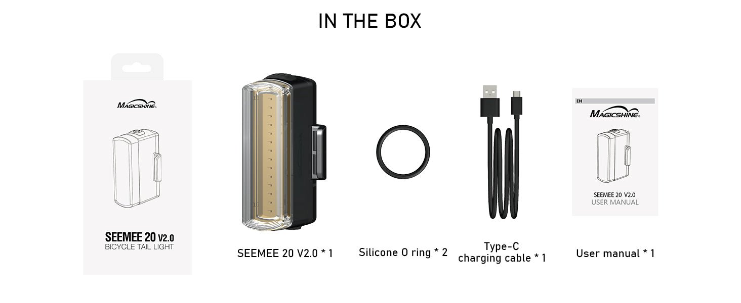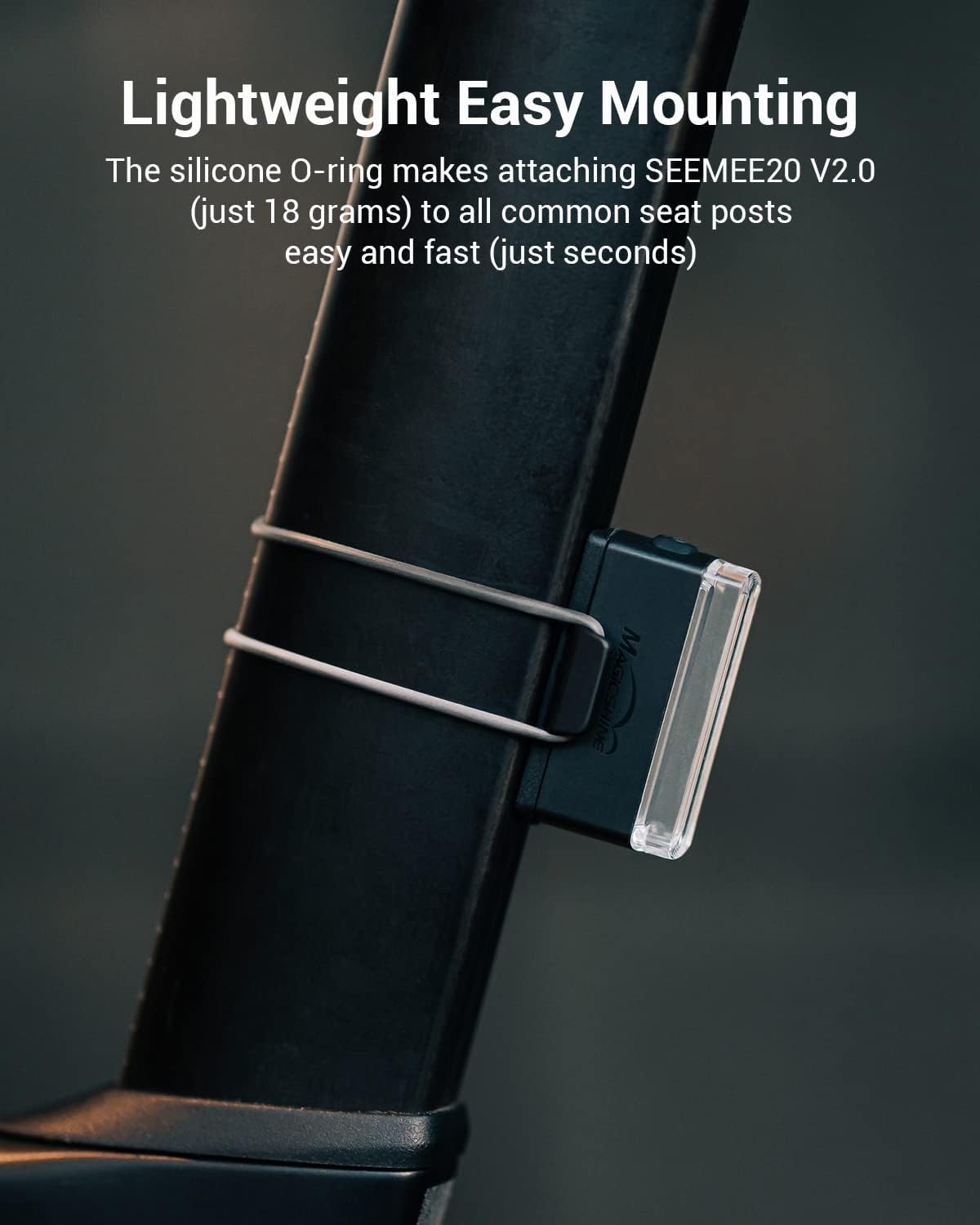 • Compact & Useful Bike Lights -- Weighing only 18g, convenient for go-anywhere use. 4 modes let you stay safe in any riding conditions, easy to operate. SEEMEE20 V2.0 rear bike light is perfect for casual cyclists and even kid's bikes.