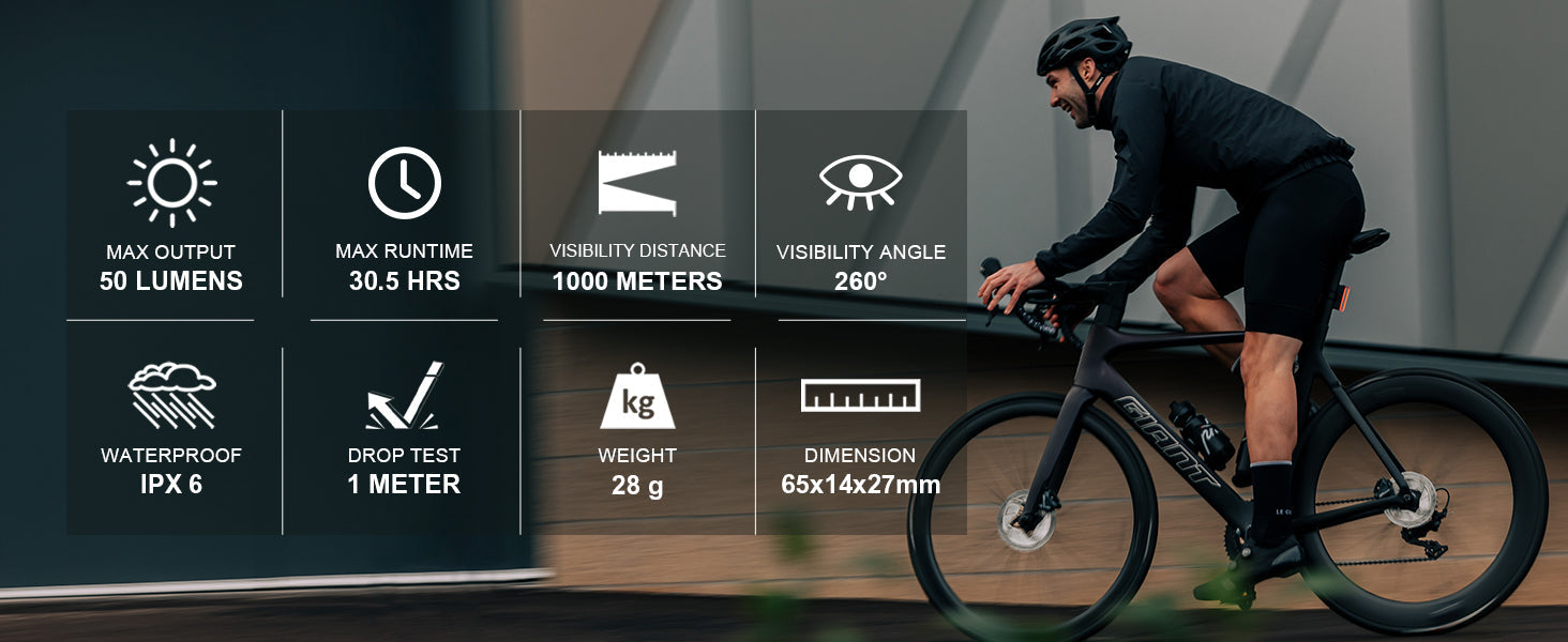 • Ultra-Bright Rear Bike Light 50 Lumens: Optillumin lens helps provide maximum 50 lumens light output, compact design, the bicycle rear light incorporates a high-transparency optical strip capable of emitting a vivid 50 lumens to bolster your visibility and safety