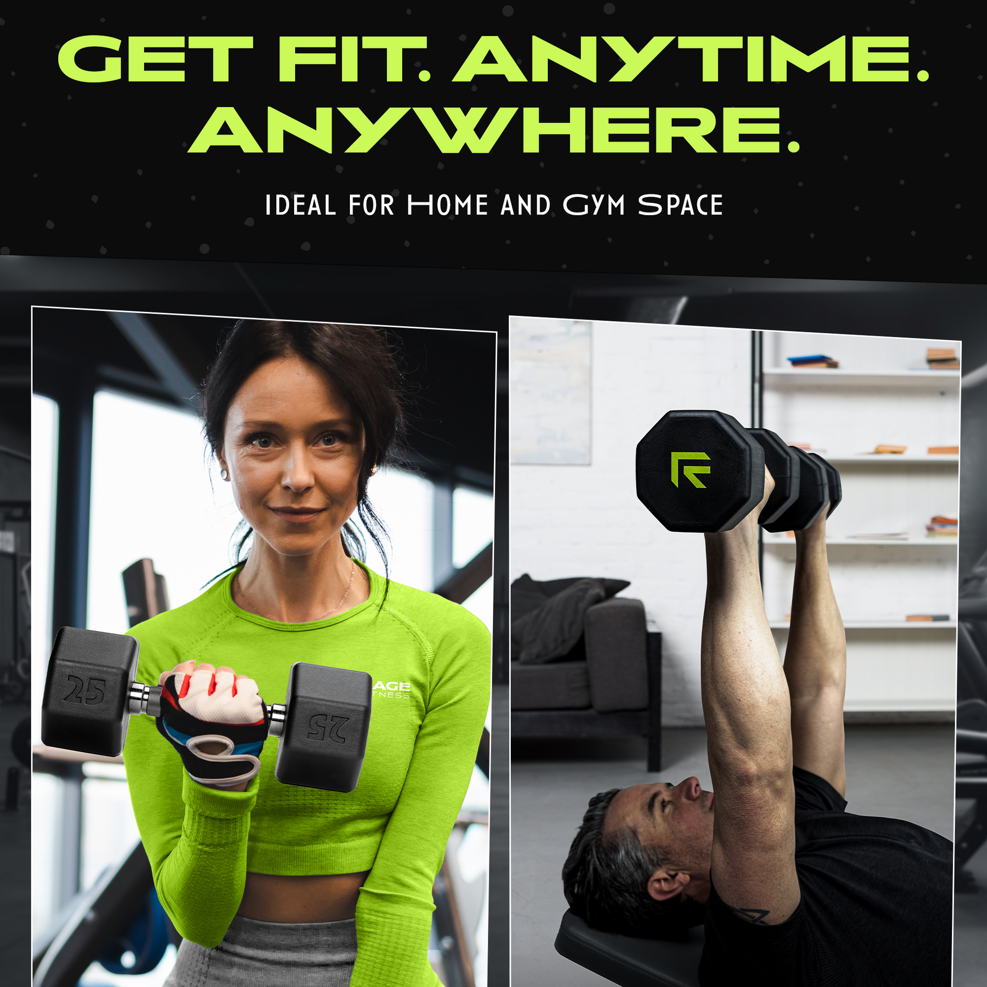 The Rage Fitness Octo Rubber Dumbbells are built with easy-grip steel knurled handles in modern graphite gray. The premium 8-sided rubber encased dumbbell is built to last, reduce noise, and prevent rolling. Perfect for your home gym or commercial gym!