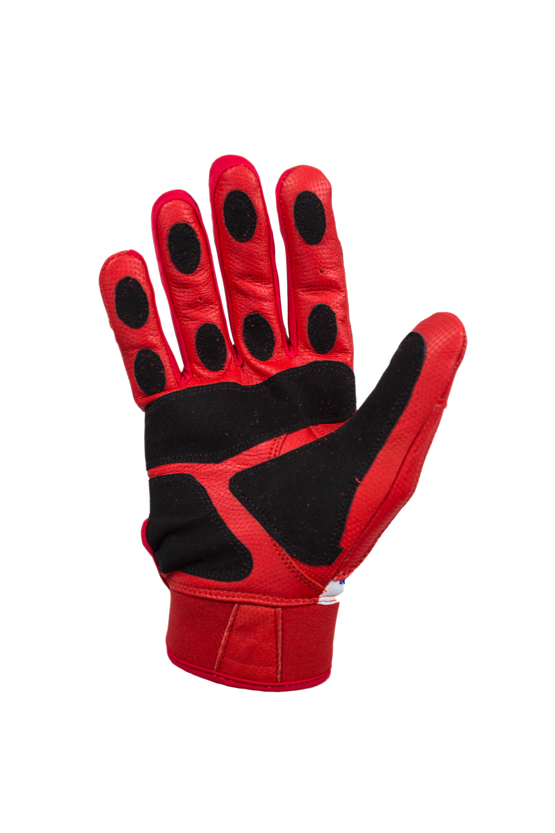From our understanding, we do not know of any other red batting gloves that use custom leather similar to VUK Patriot Batting Gloves! We needed to do something 100% different! So, a mix of custom leather that comes in all different colors plus the stretchy backing makes these the strongest in the game! Also, we picked supple leather to make sure our Patriot Batting Gloves perform in any weather!