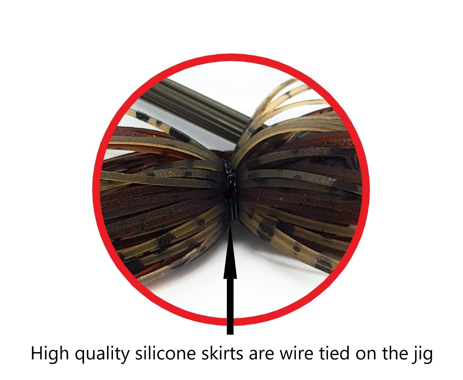 • LIFELIKE SILICONE SKIRT ACTION: The silicone skirt on our jigs replicates the lifelike movement of real prey in the water, enticing bass lurking in hard-to-reach spots