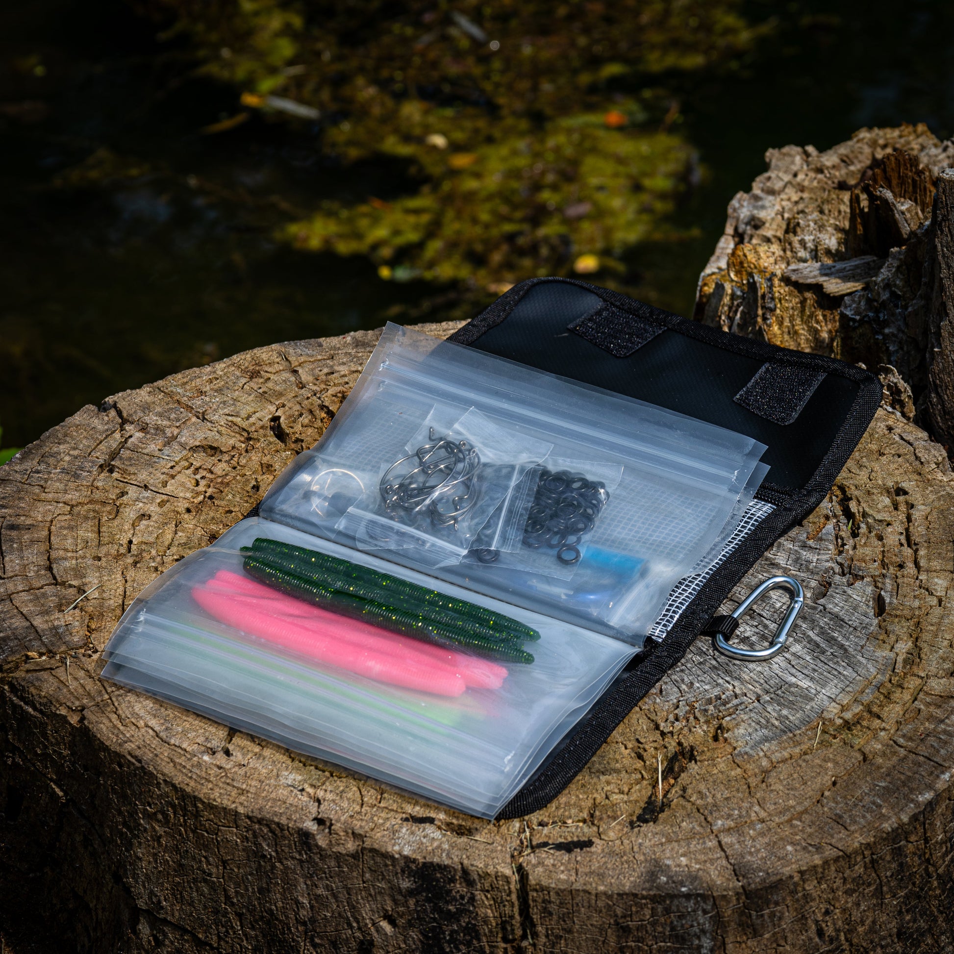 • WACKY KIT: Everything you need for a successful day on the water; Includes (1)Soft carrying case- (12)5.5" Plastic worms- (1)Wacky tool- (10)Wacky hooks- (10)Texas rig hooks- and (75)O-rings