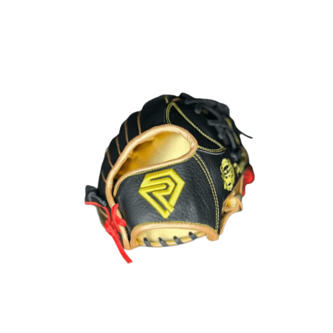 This glove is part of the Discovery Series and is a great option for younger players due to its soft, flexible feel. It is truly a plug-and-play design. It is one of a kind, dressed in black, with bold, vibrant accent colors of red and gold. This glove is constructed of Rosie's  is handcrafted using Rosie's Premium Steerhide Select leather, which provides long-lasting durability. This glove was designed by 2-time NCAA Champion and Team USA shortstop Grace Lyons. This glove features Grace's Lionheart logo and boldly displays Proverbs 28:1, "The wicked flee when no one pursues, but the righteous are BOLD as a Lion."